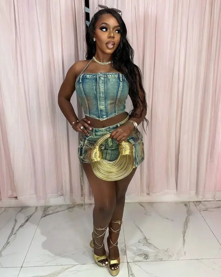 Whether you're attending a summer festival, a casual gathering, or just enjoying a day out with friends, this outfit offers the perfect fit and comfort. Designed for those who appreciate both flair and functionality, it combines stretchy denim with a flattering silhouette, ensuring you look and feel your best.