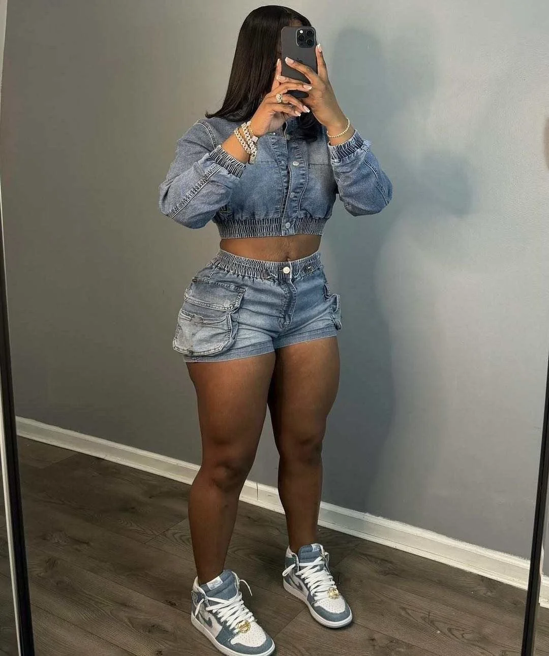 Crafted with care, this set includes a stylish matching top and comfortable shorts, tailored for fashion-forward women who appreciate details. Made from premium quality denim, the shorts offer the durability you need while embracing a soft, comfortable fit. The multi-pocket design is not just a fashionable statement – it allows you to carry essentials effortlessly, making it as functional as it is stylish. Perfect for getting through your day while keeping everything you need within reach.
