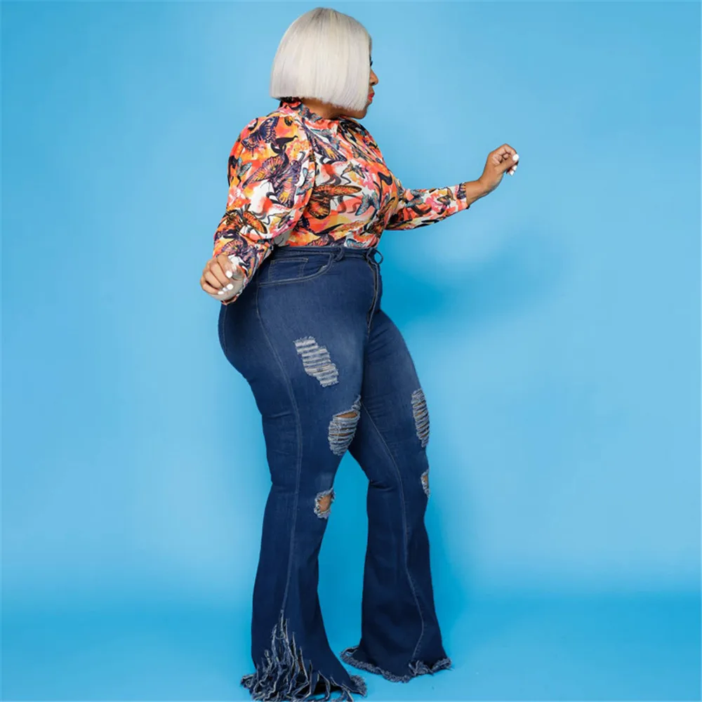 Stylish Plus Size High Waist Flared Jeans